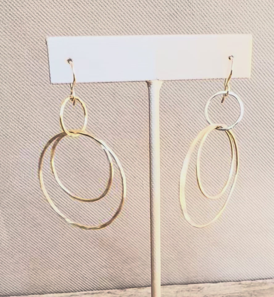 Expertly fashioned from 14k gold filled or sterling silver wire, the Charlotte Triple Hoop earrings present an elegant multi-layered hoop arrangement. These chic earrings provide a polished and versatile accent to elevate any look.