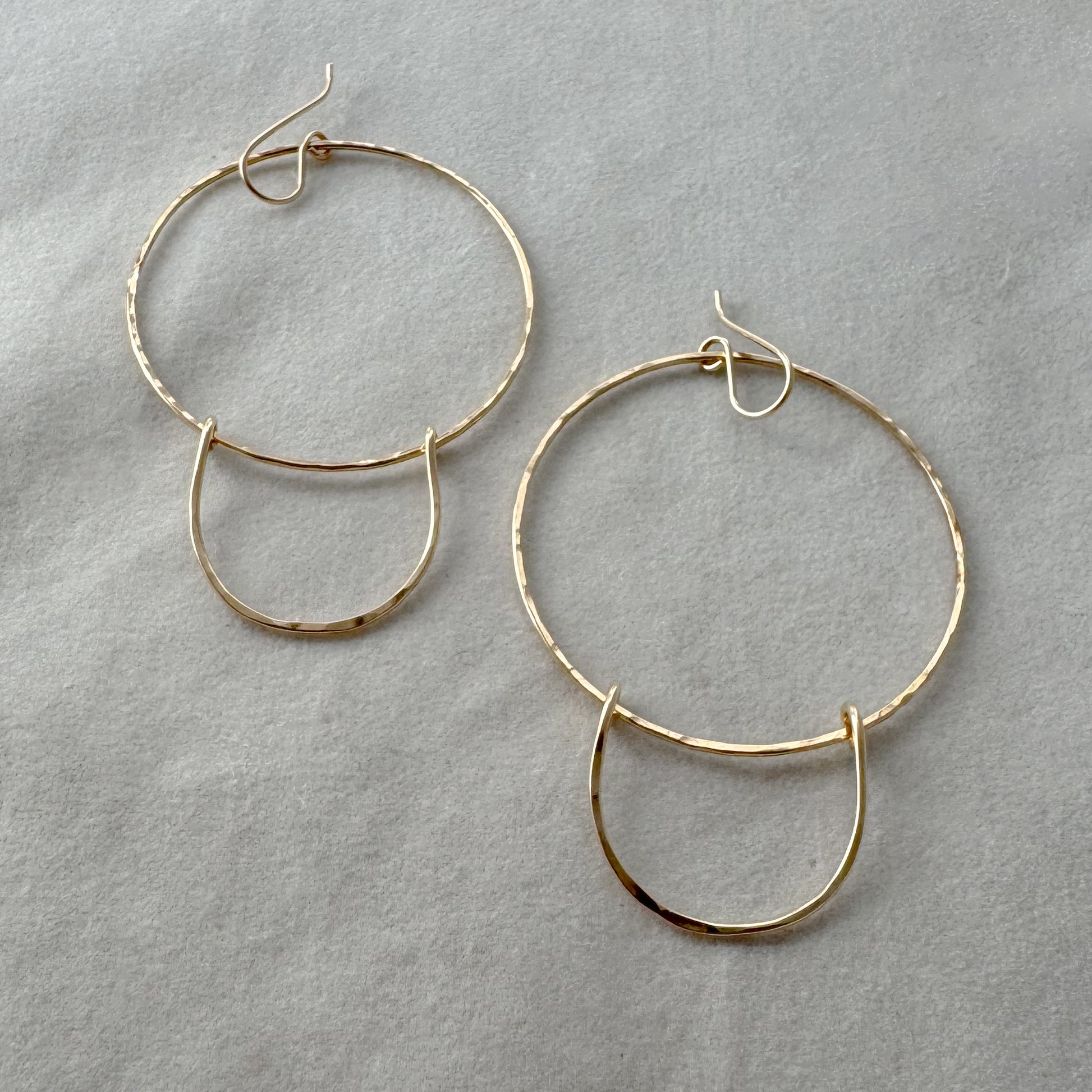 Expertly handcrafted with 14k gold filled or sterling silver wire, the Dayton Earrings feature a stunning multi-hoop swing design measuring Elevate any outfit with these versatile and elegant earrings.