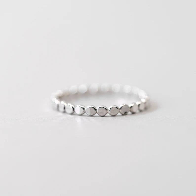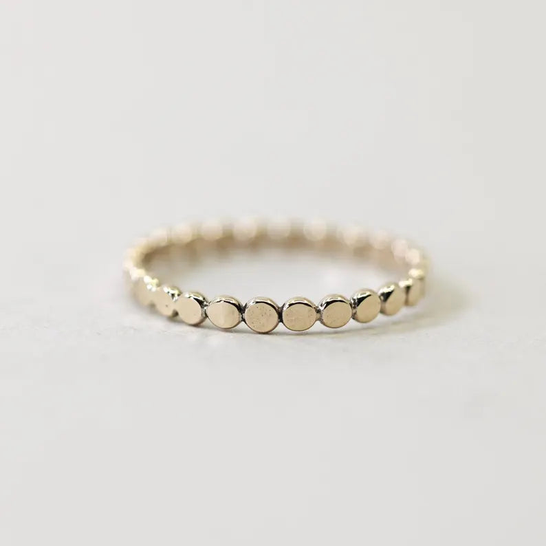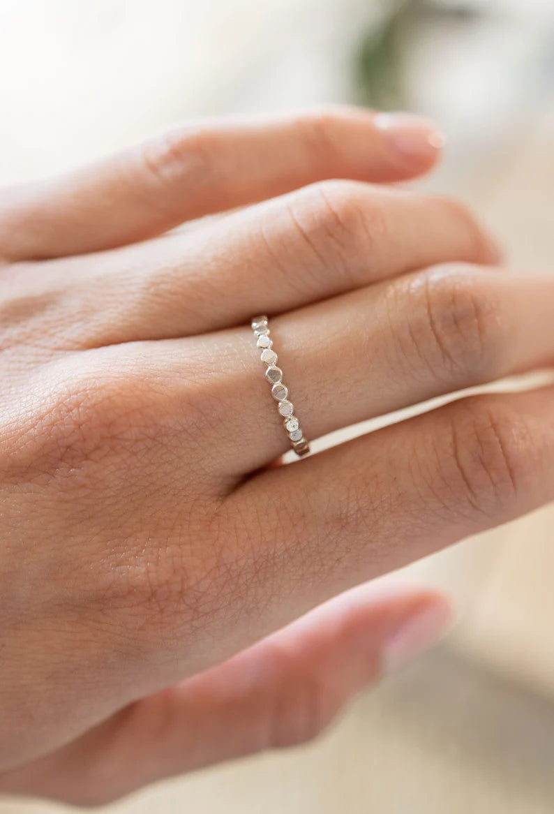 Our flutter stack features a delicate beaded texture that adds subtle shimmer and dimension to your ring stack.