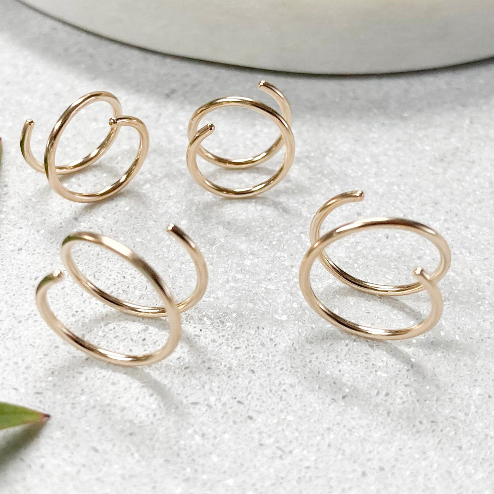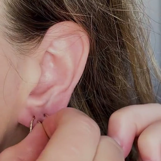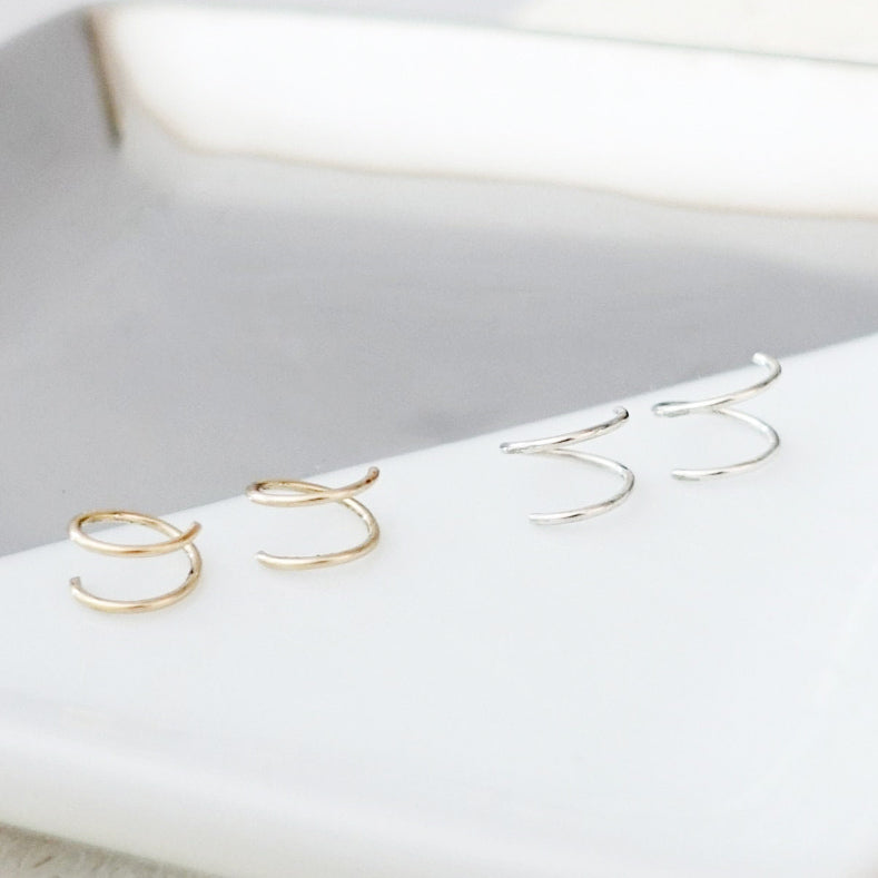 DETAILS: Hand crafted small double tiny twist hoops that can make a single piercing look like a double. Comfortable for anyone to wear and polished to perfection.